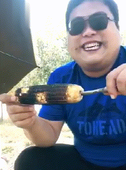 看小哥笑得很甜,这个玉米一定很好吃。